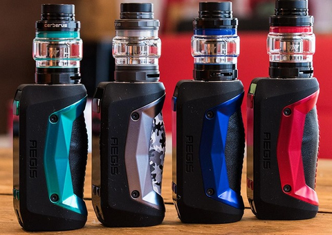 The Aegis Mini from GeekVape is an affordable and capable internal battery mod, offering up to 80 W of power in VW mode and supporting TC vaping with nickel, titanium and stainless steel coils. It’s a bit smaller than the average box mod, and has a textured grip section at the back.