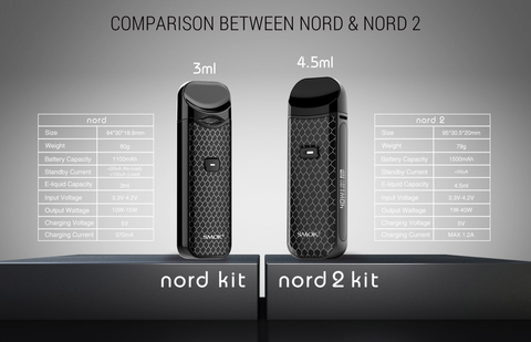 The Smok Nord 2 is almost identical in size to a Smok Nord but superior in every way. The pod design has been improved and is less prone to leak. It also holds 50 percent more eliquid, 4.5ml versus 3.0ml.