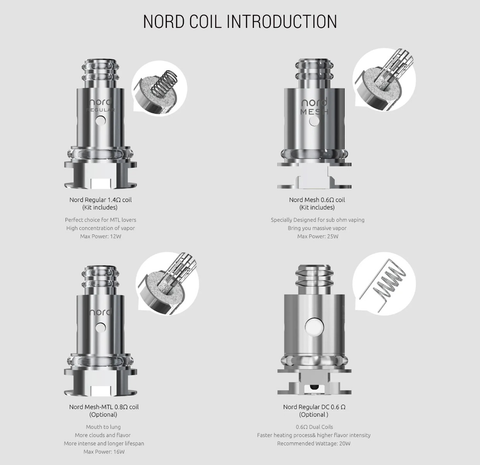 The Nord family of coils simply work and this is one reason why Smok still makes compatible devices. The 0.6ohm mesh Nord coil is probably a bit too stiff for nic salts and the same is true of the 0.6ohm DC Nord coil. If you are a heavy smoker and using lower nic strength salts, they might be viable but you are better off exploring one of the other coil options.