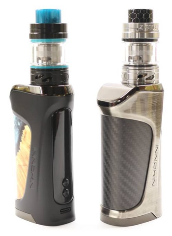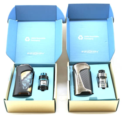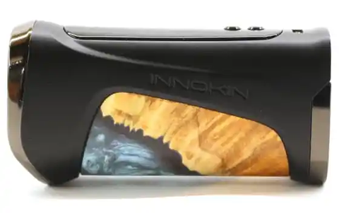 There are 5 different colors in the Innokin Kroma 217 Z Force kit range; River Wood, Mariana Blue, Stealth Black, Carbon Fibre and Glass Fibre. The frame of the Kroma 217 comes in 3 colors; Matte Black, Brushed Antique Gunmetal and Brushed Steel Silver. The Z Force tank comes in 2 colors; Matte Black and Stainless Steel with color matched 810 drip tips.