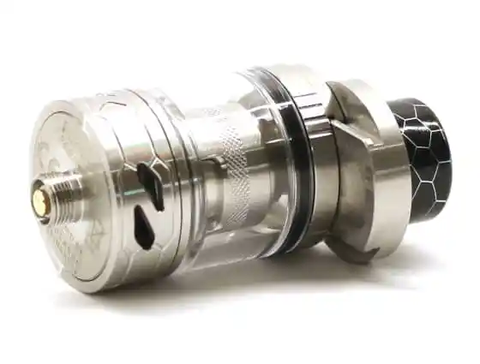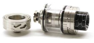 Airflow is achieved by the bottom quarter turn adjustable dual teardrop shaped double slots. The airflow can be adjusted anywhere from fully open which opens both the teardrop slots for a DTL draw or slowly closing it down to restrict the teardrop openings for a RDL vaping style. The resistance of the airflow ring is very good so will not inadvertently move unless you turn it.