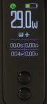 When the Kroma 217 mod is first placed on charge, the small battery icon on the main screen display will cycle from red to yellow to green indicating that it’s charging. After the screen timeout period, the display will switch to a larger battery screen display which shows a graphical power lead, the USB symbol and the battery icon with a cycling color scale.