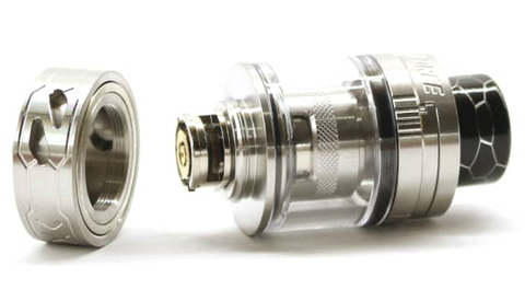 Removal of the coil is again pulled and NOT screwed from the tank. As the coil is removed, the spring loaded juice control will start to spring shut blocking off any e-liquid flow.